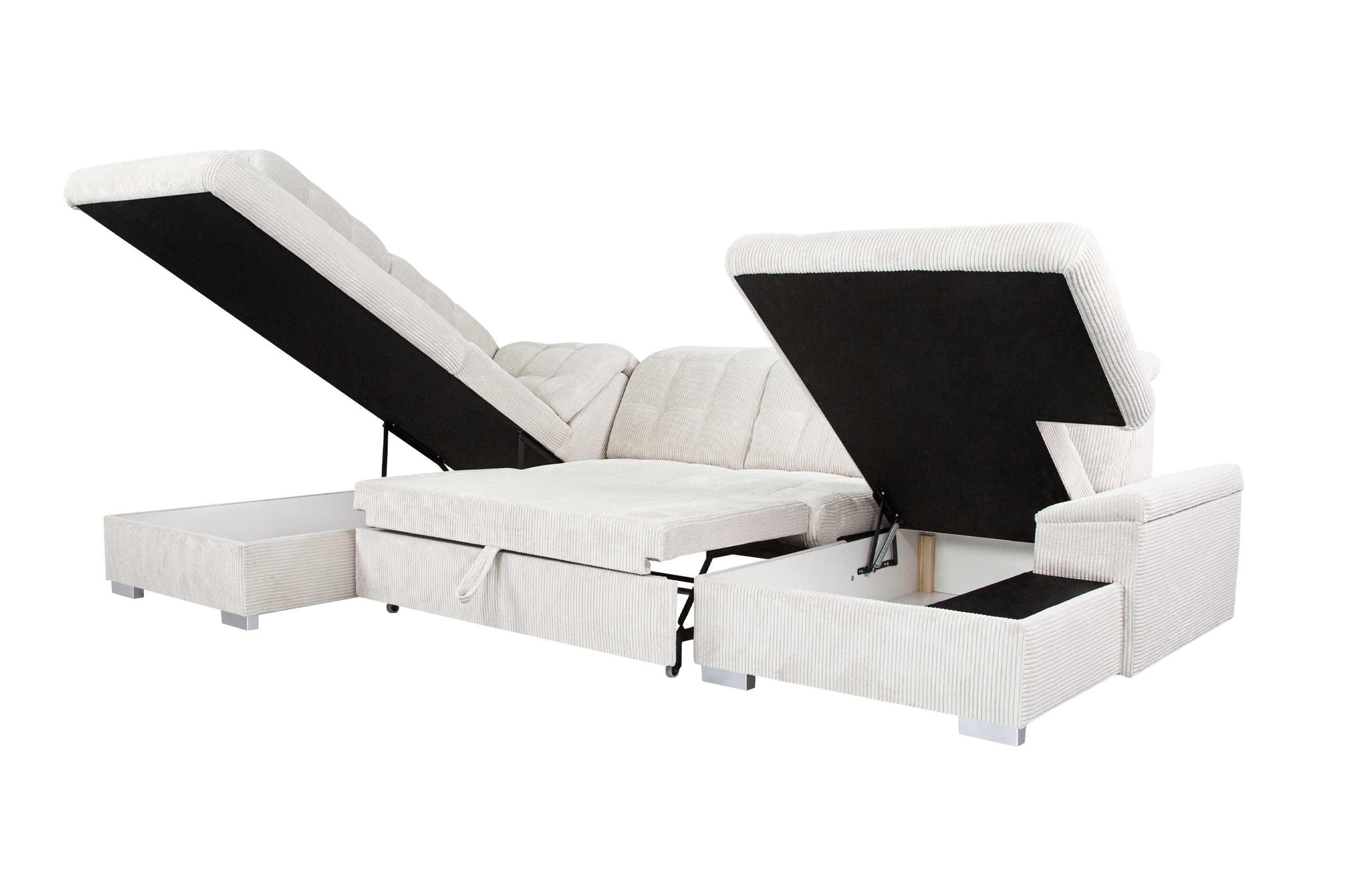 Integruota miego funkcija leidžia sofą greitai paversti erdvia lova, o dvi talpios daiktadėžės – patogiai laikyti patalynę ar kitus daiktus. Reguliuojami atlošai užtikrina maksimalų sėdėjimo patogumą, todėl ši sofa idealiai tinka tiek poilsiui, tiek kasdieniam naudojimui.