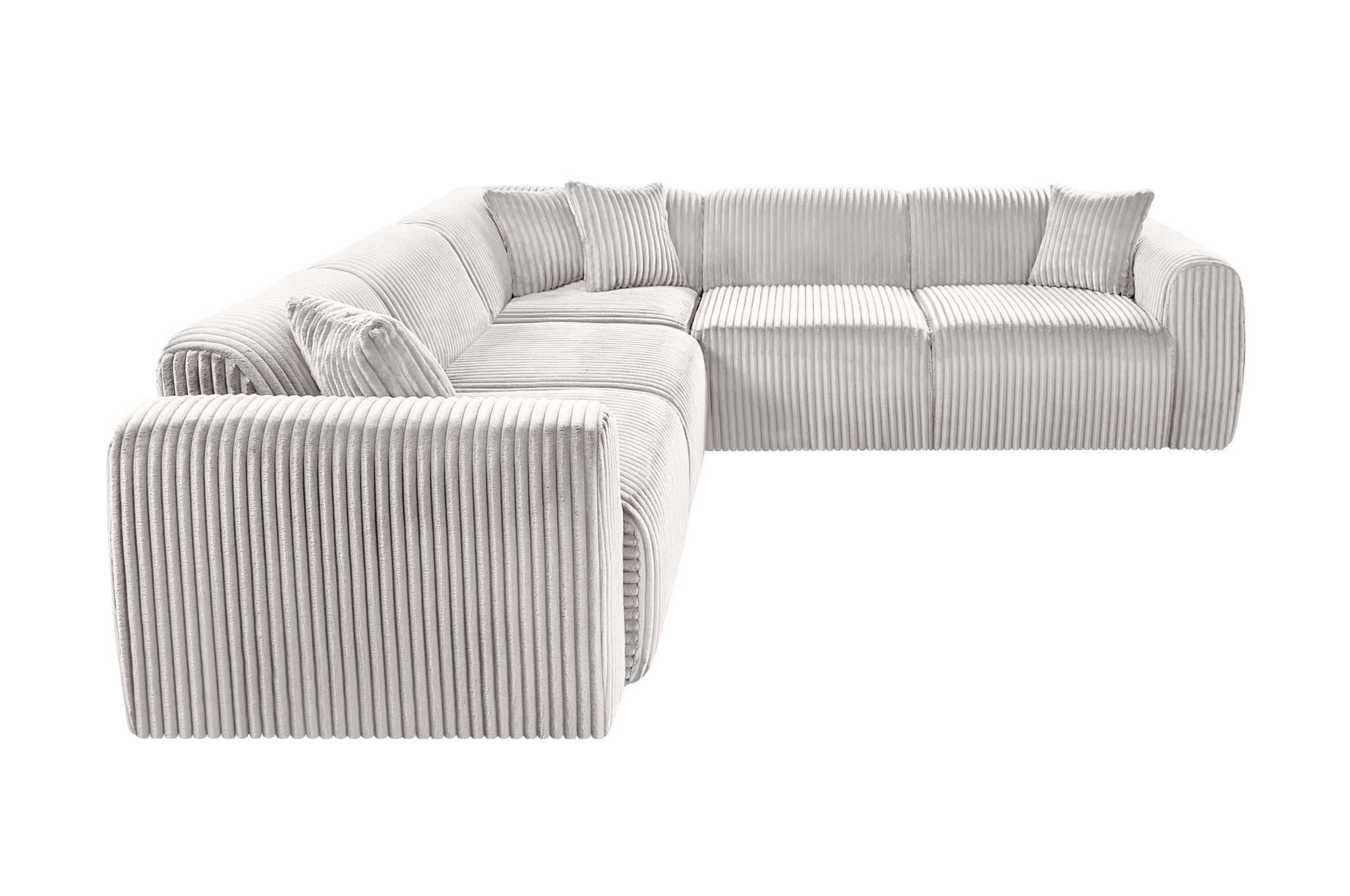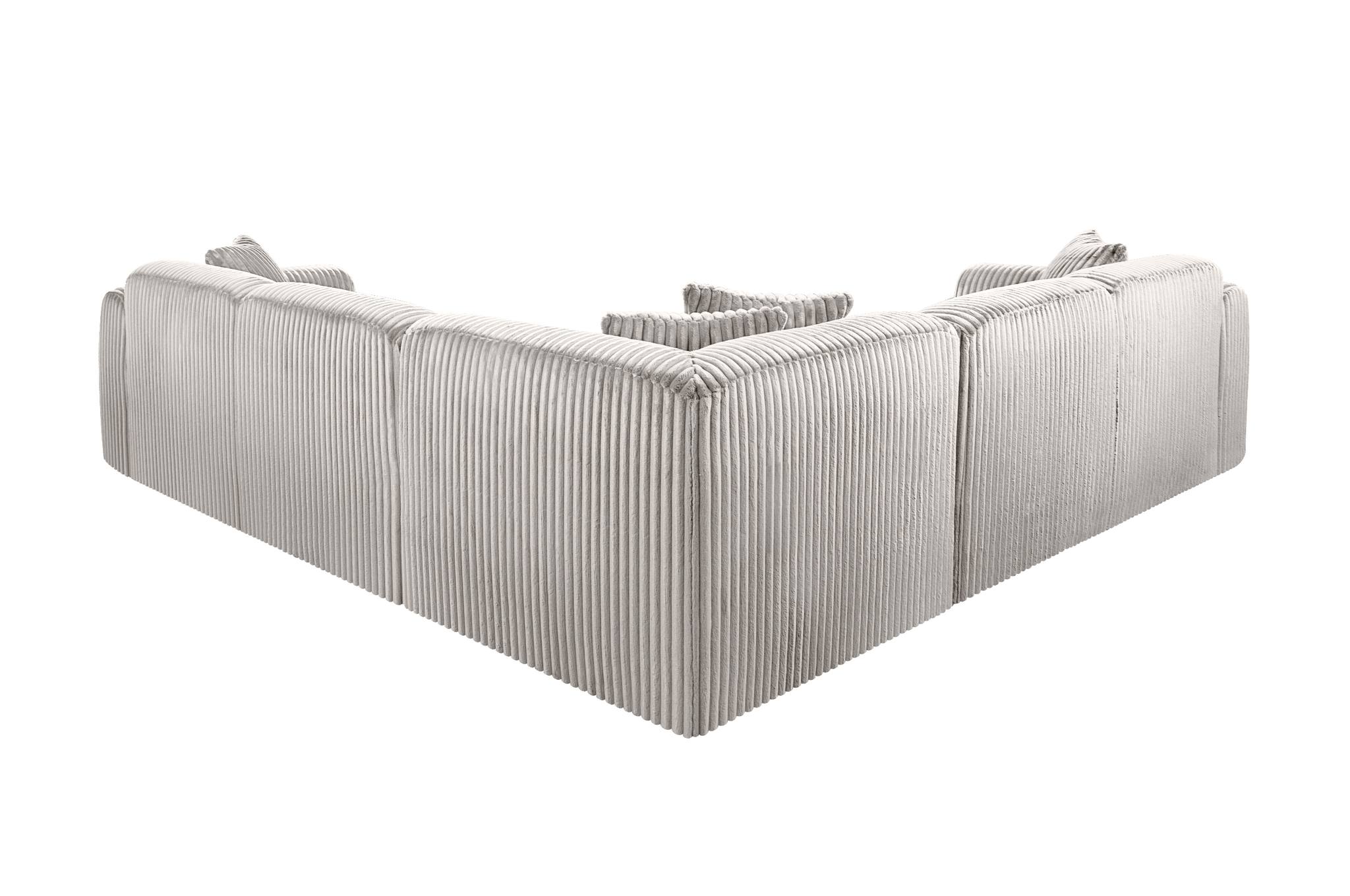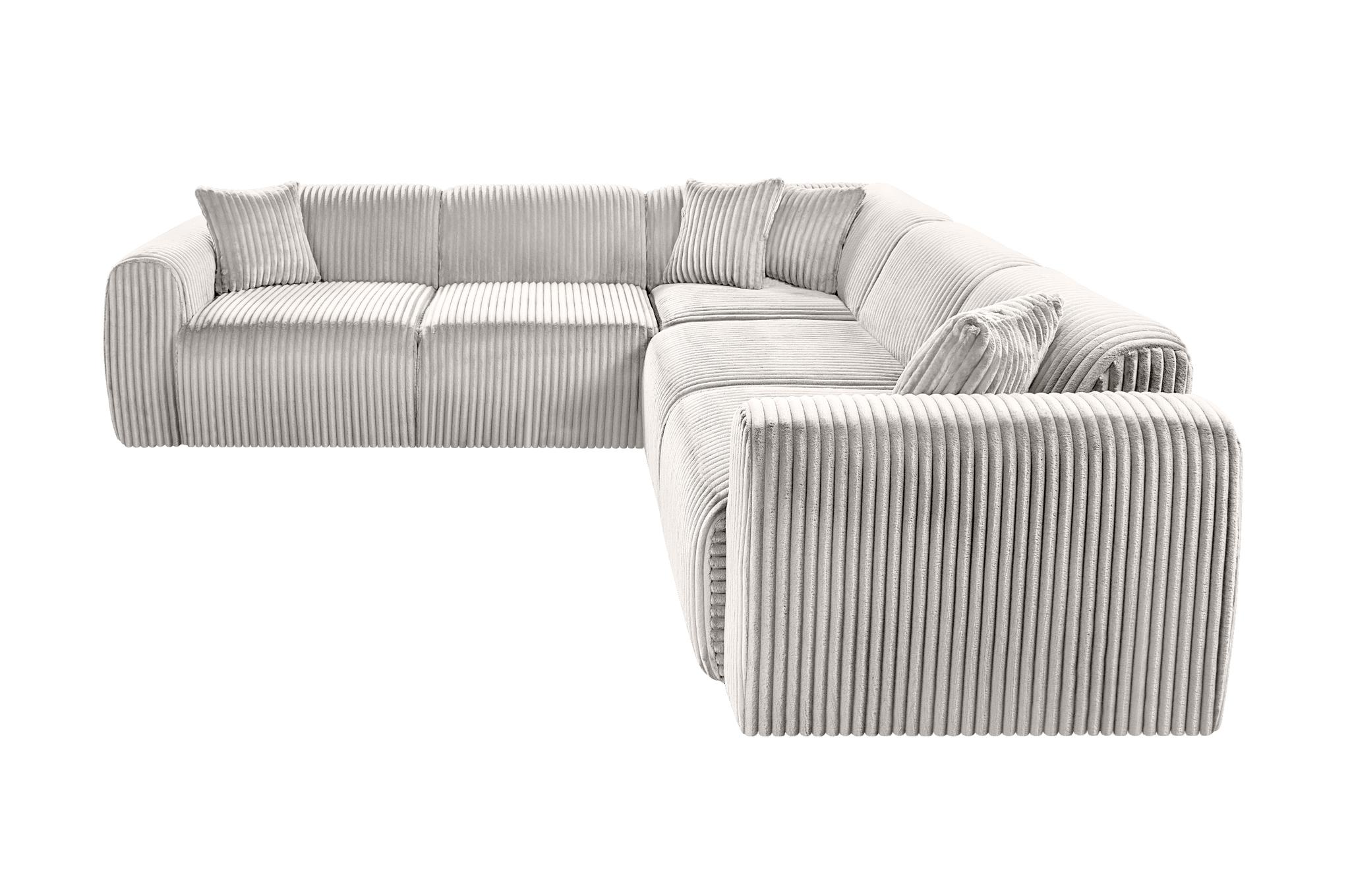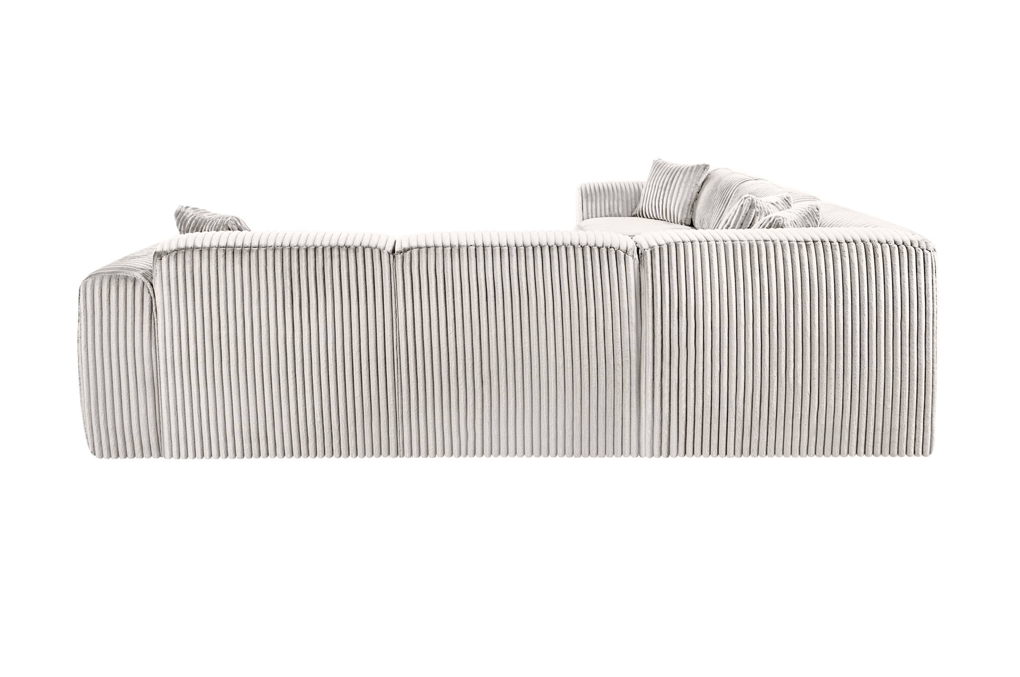Kampinė sofa „TAMARA“ – 5 vietų, šviesiai pilka plačiaraištė veliūro