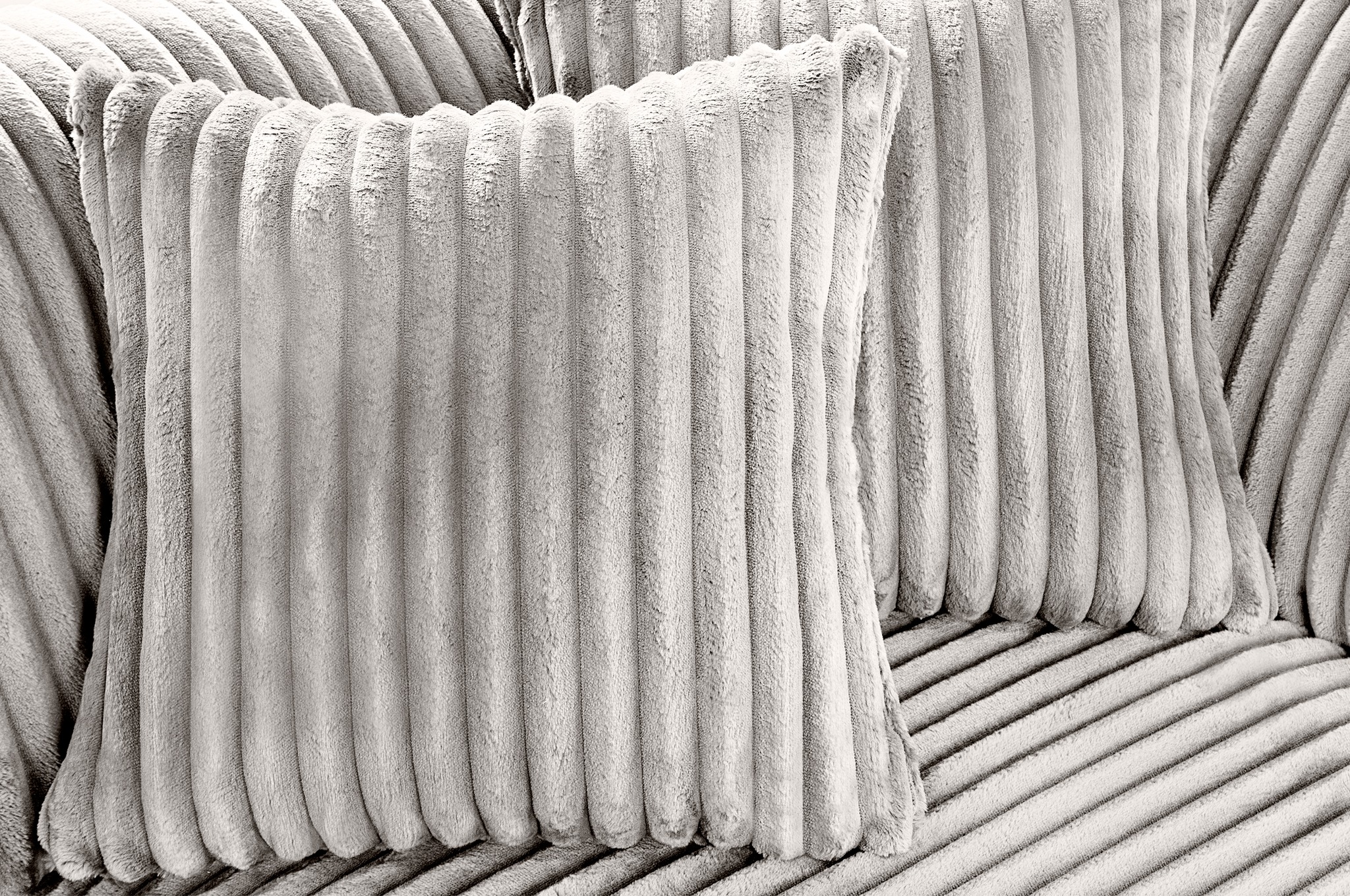 Moderni kampinė sofa „TAMARA“ sukurta siekiant komforto ir šiuolaikiško stiliaus balanso. Ji aptraukta švelniu plačiaraiščiu veliūru, kuris suteikia jaukumo ir elegancijos pojūtį. Šviesiai pilkos spalvos audinys bei švelniai apvalintos formos kuria harmoningą ir modernų įvaizdį, puikiai tinkantį tiek minimalistiniam, tiek klasikiniam interjerui.
