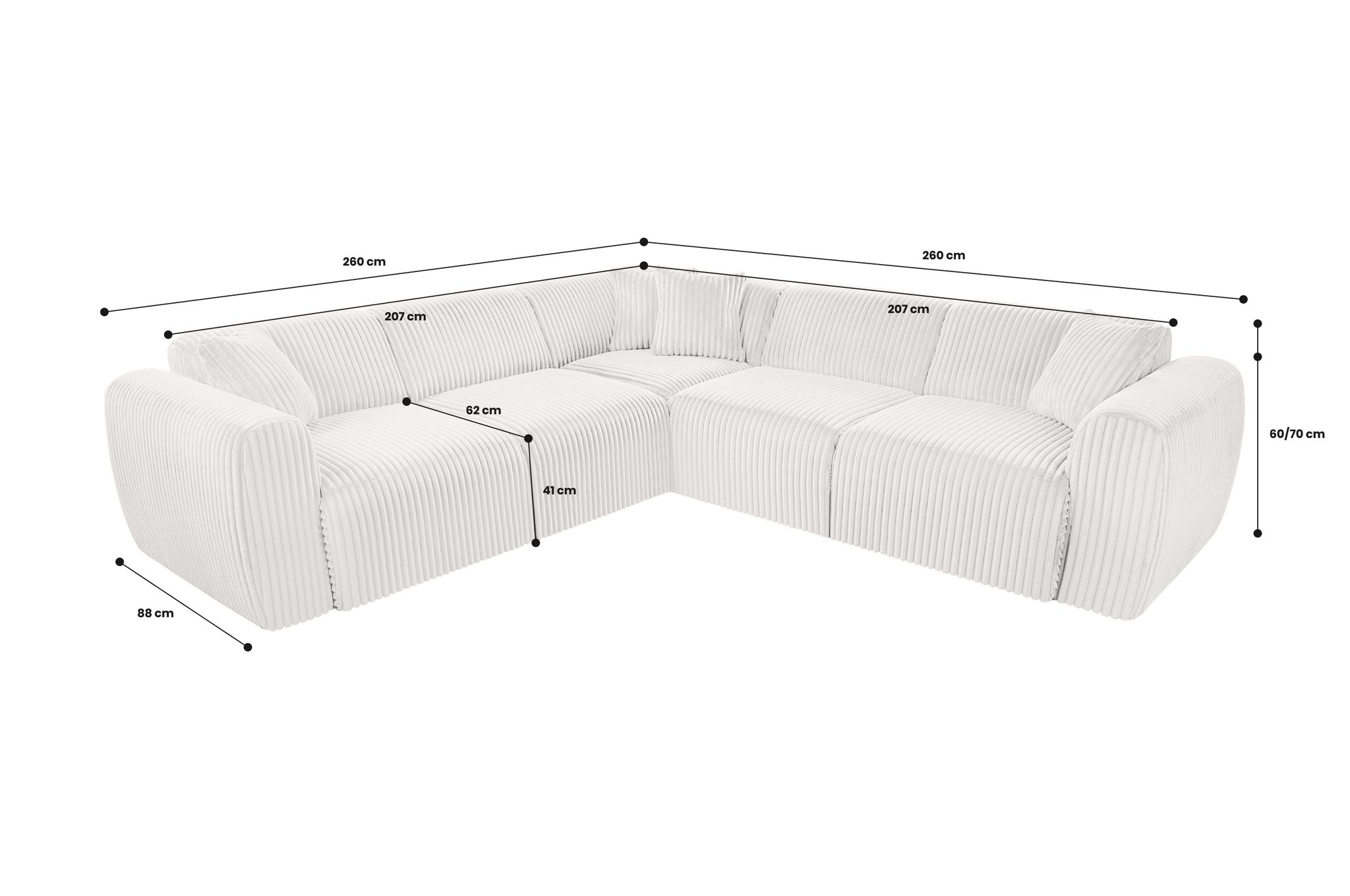 ▪ Sėdimosios dalies plotis – 2 × 207 cm