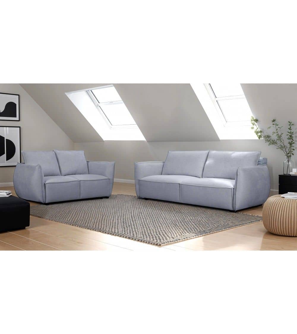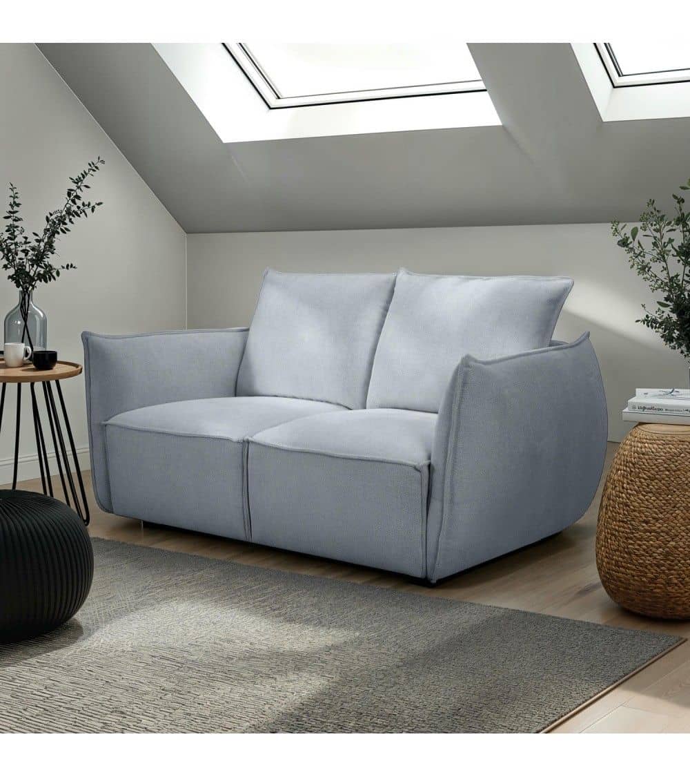 Kompaktiška ir moderni dviejų vietų sofa su patogia spyruokline sėdėjimo sistema. Puikiai tinka mažesnėms svetainėms ar jaukiems kampeliams.