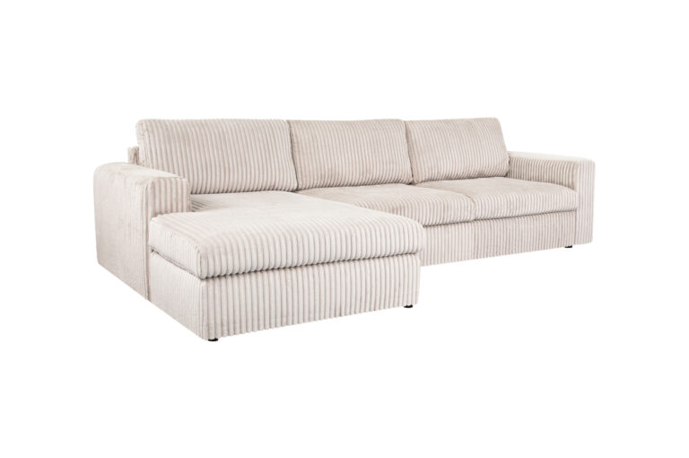 Elegantiška ir praktiška L formos kampinė sofa su šezlongo dalimi. Puikus pasirinkimas jaukiai ir stilingai namų aplinkai.