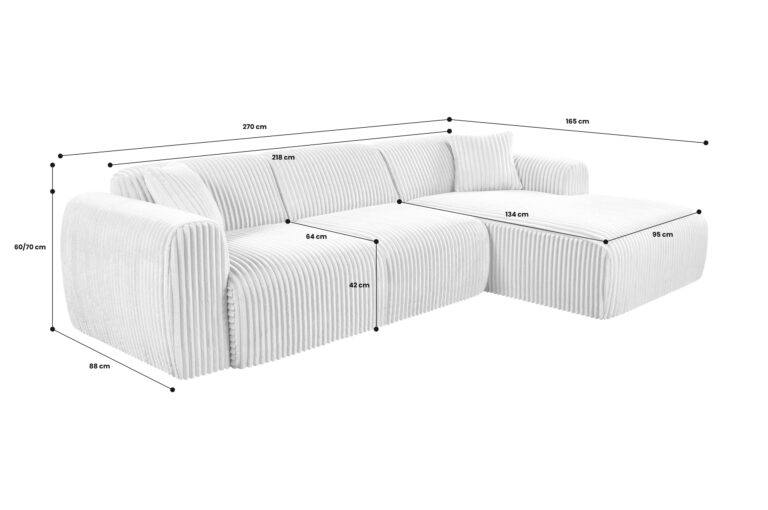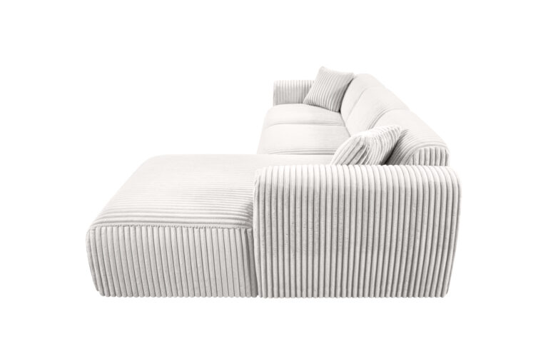Elegantiška ir kompaktiška L formos kampinė sofa su šezlongo dalimi. Modernus dizainas ir aukštas komfortas – puikus pasirinkimas tiek mažoms, tiek didesnėms svetainėms.