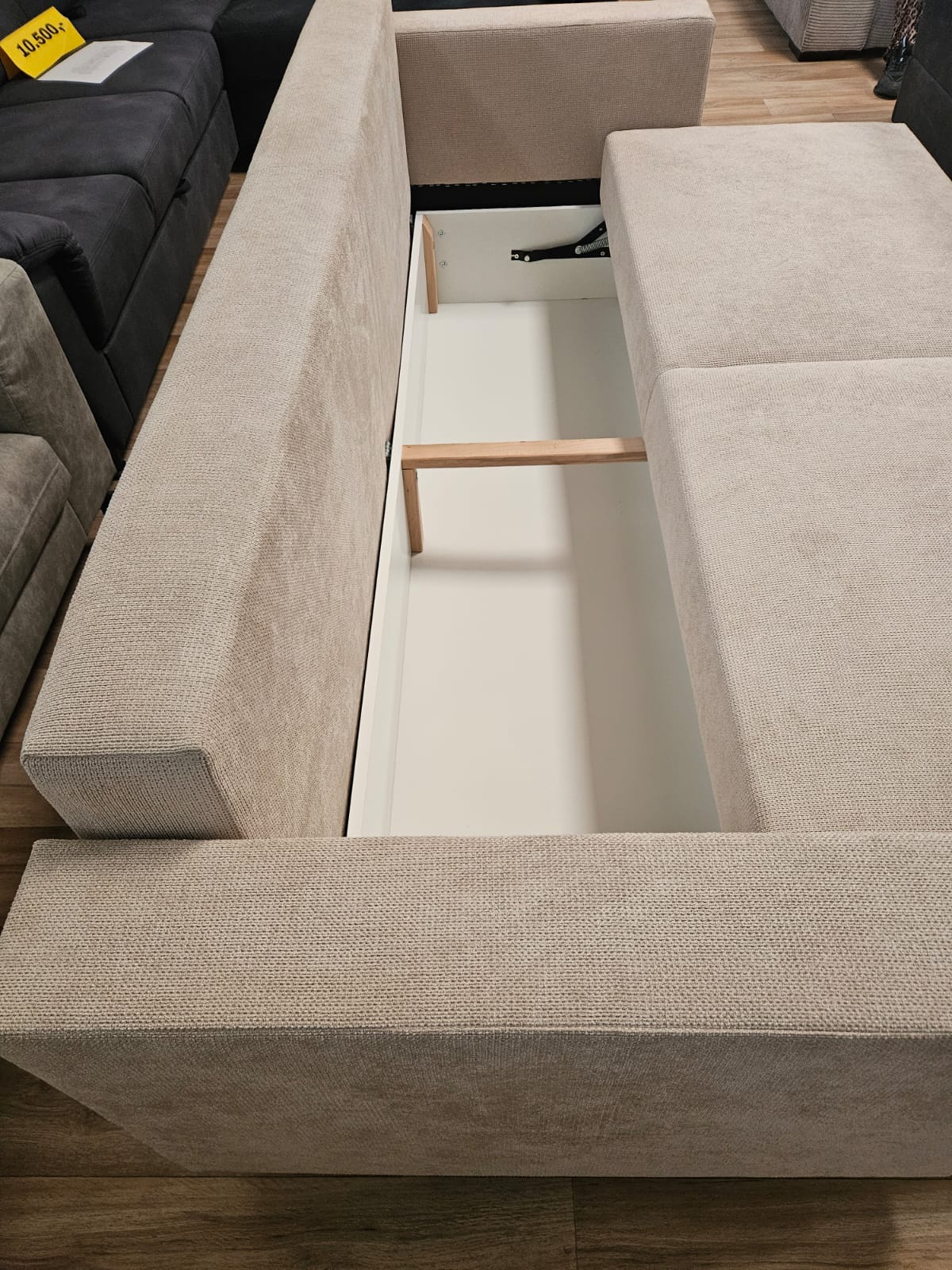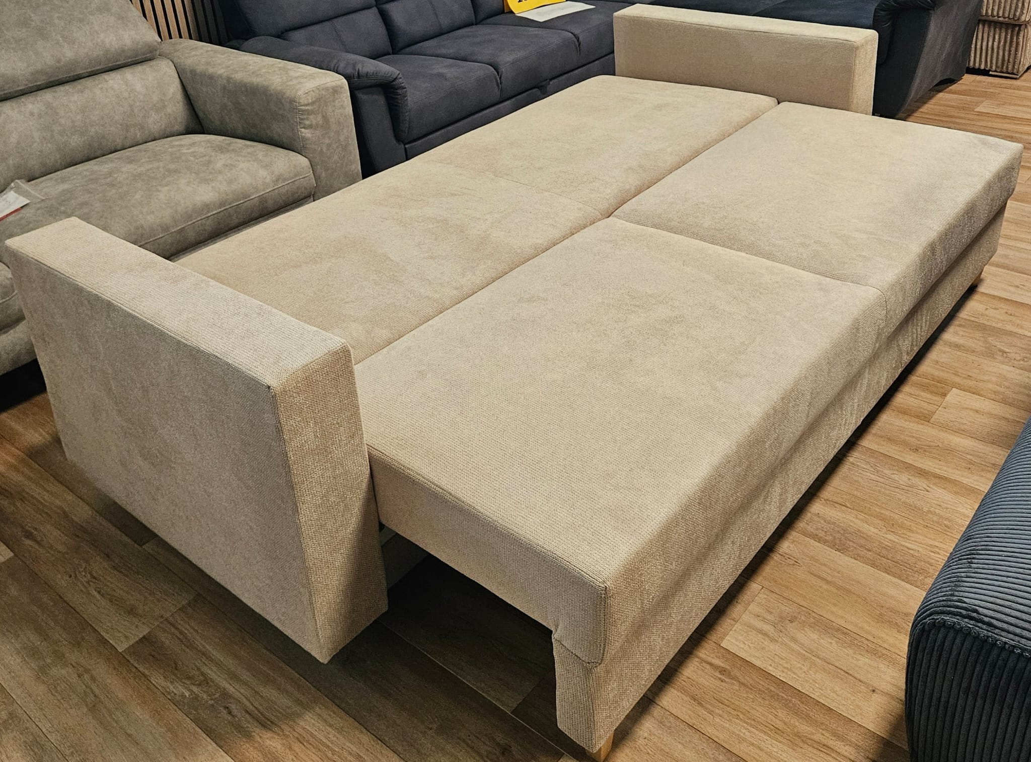 Miegamoji sofa „KRIS“ – smėlio spalvos audinys