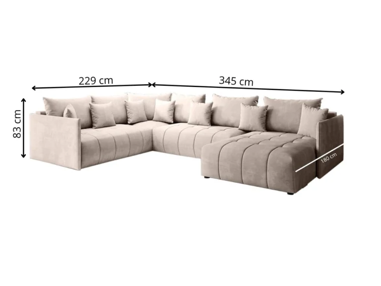 „ASPEN BIS“ – tai erdvi ir patogi U formos sofa-lova, sukurta moderniems namams, kuriuose svarbus komfortas ir funkcionalumas. Sofa turi integruotą miego funkciją bei patalynės dėžę, skirtą patalynei ar pagalvėms laikyti.
