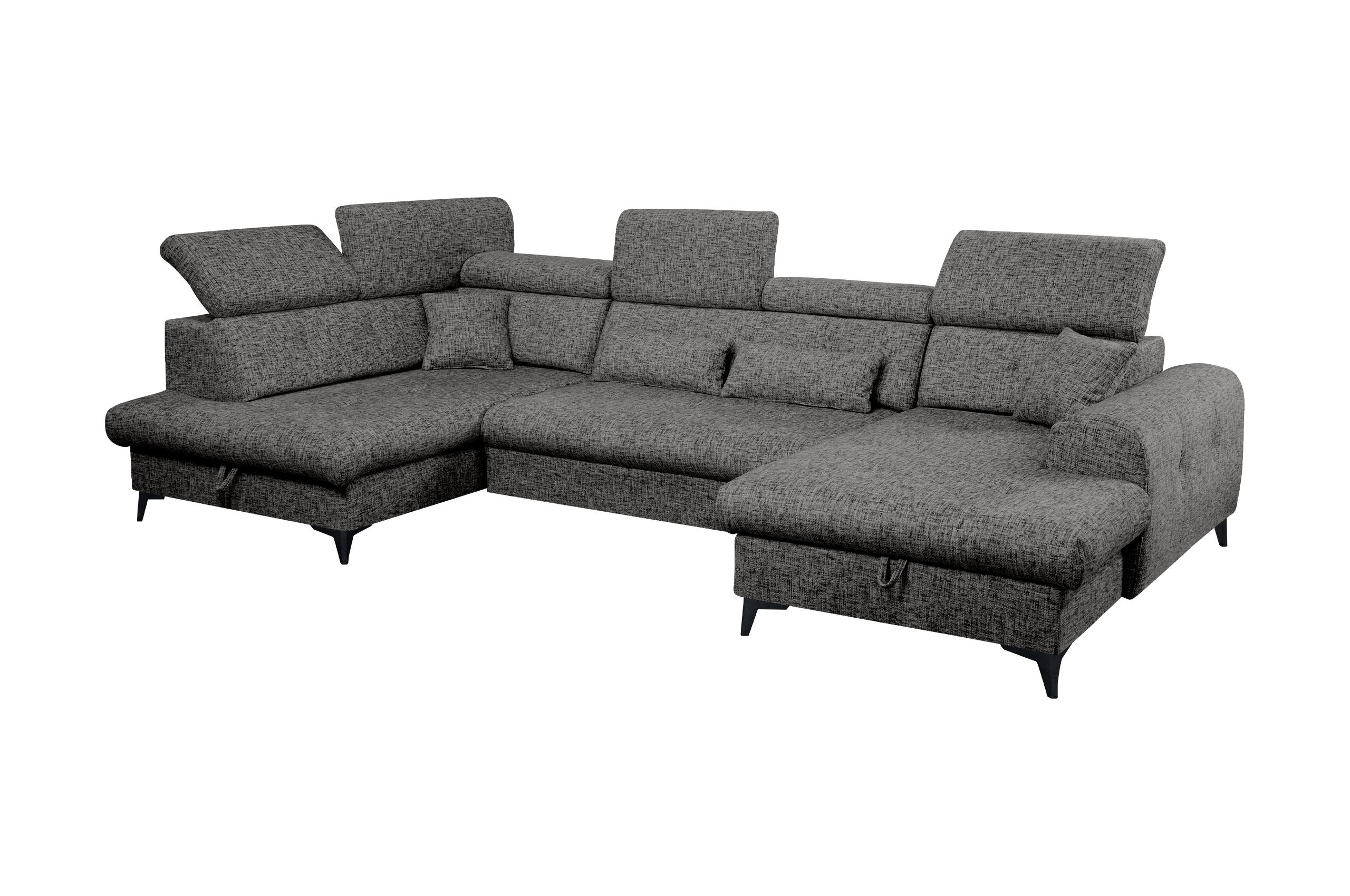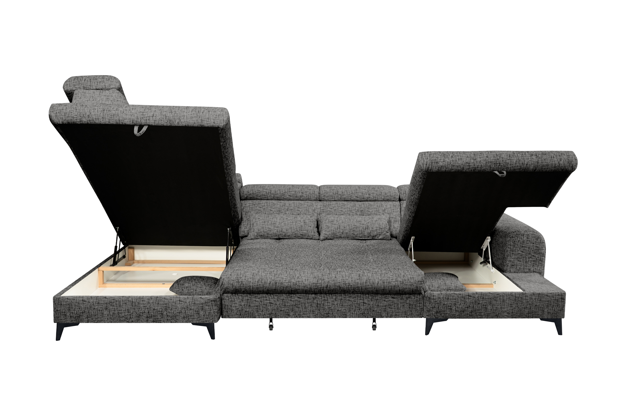 Elegantiška ir moderni U formos sofa ELETRA išsiskiria savo funkcionalumu ir aukštu komforto lygiu. Ši patogi sofa turi elektrinę miego funkciją, leidžiančią lengvai ir greitai paversti sėdimąją dalį patogia lova. Modelis pasižymi net dviem talpiomis daiktadėžėmis, kuriose patogu laikyti patalynę ar kitus daiktus. Reguliuojamos galvos atramos suteikia papildomą patogumą, o dekoratyvinės pagalvėlės suteikia sofai išbaigtą, stilingą išvaizdą.